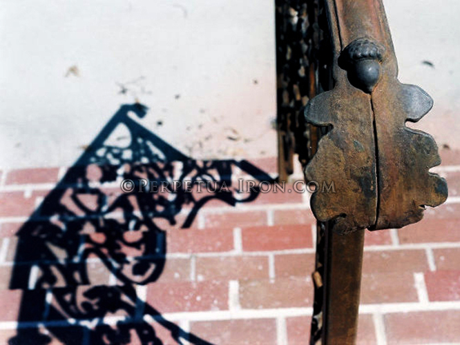 Railing 124.2 A detail of 124 showing rust patina and acorn detail.